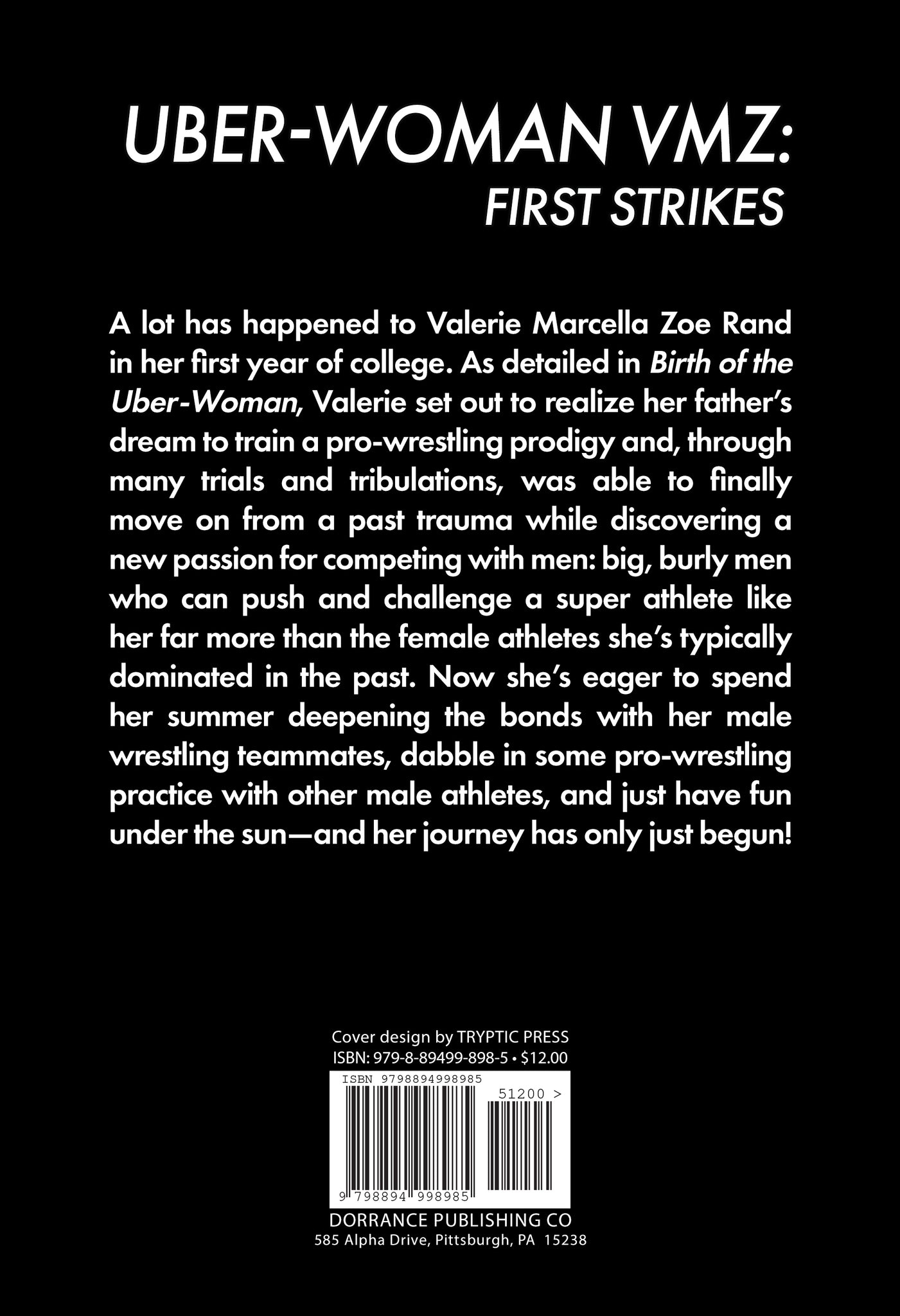 A lot has happened to Valerie Marcella Zoe Rand in her first year of college. As detailed in Birth of the Uber-Woman, Valerie set out to realize her father’s dream to train a pro-wrestling prodigy and, through many trials and tribulations, was able to finally move on from a past trauma while discovering a new passion for competing with men: big, burly men who can push and challenge a super athlete like her far more than the female athletes she’s typically dominated in the past. Now she’s eager to spend her summer deepening the bonds with her male wrestling teammates, dabble in some pro-wrestling practice with other male athletes, and just have fun under the sun—and her journey has only just begun!