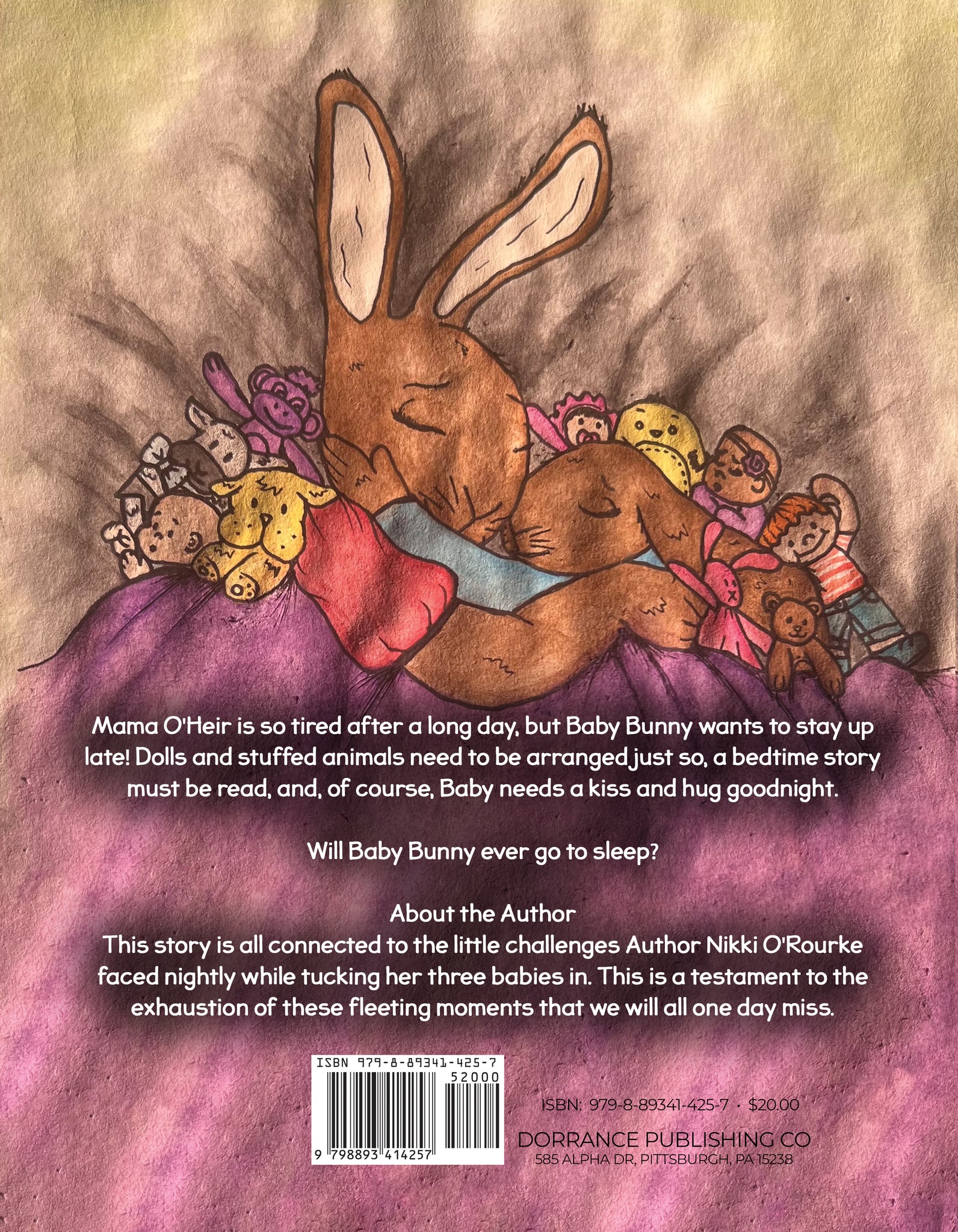 Mama O'Heir is so tired after a long day, but Baby Bunny wants to stay up late! Dolls and stuffed animals need to be arranged just so, a bedtime story must be read, and, of course, Baby needs a kiss and hug goodnight.