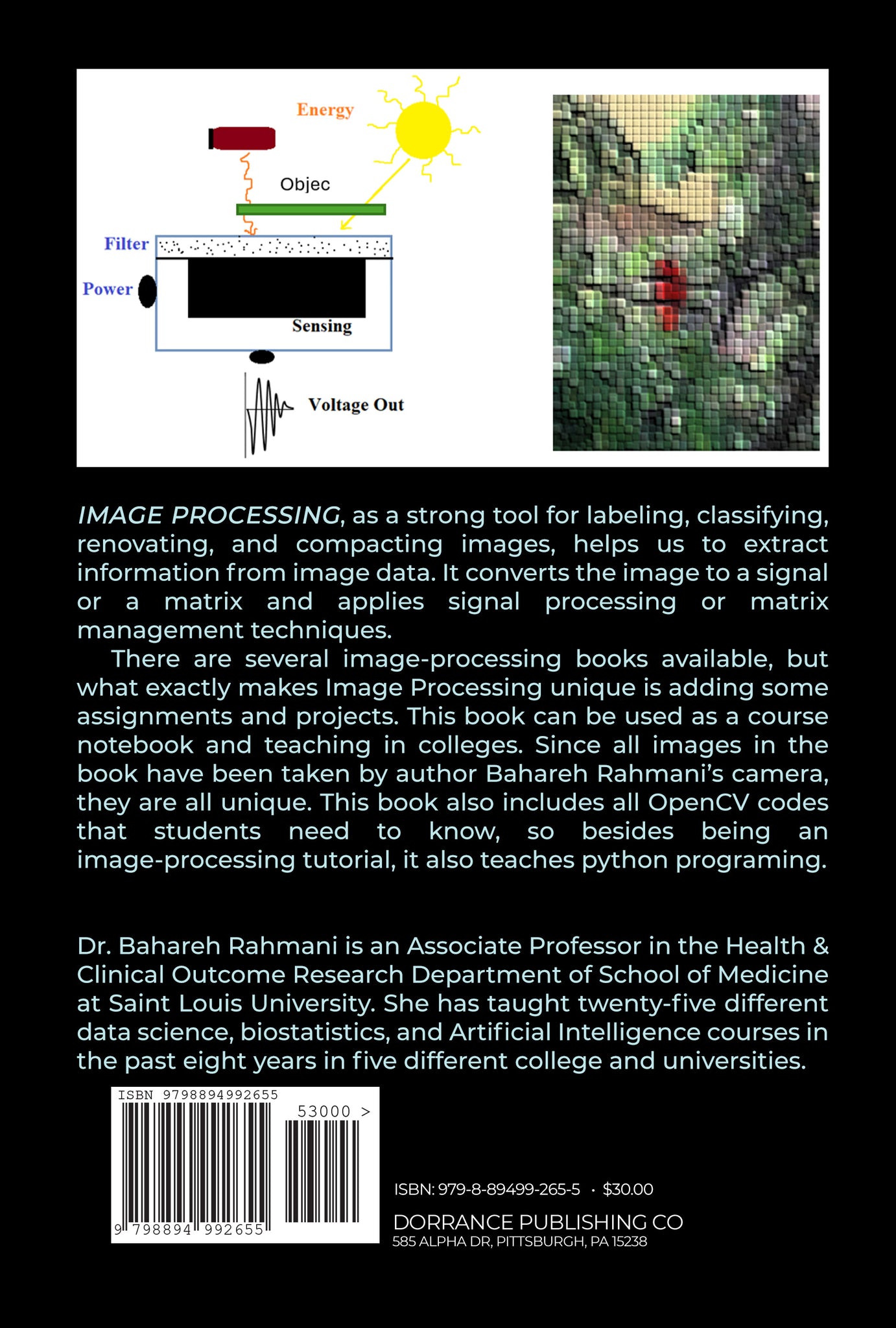 There are several image-processing books available, but what exactly makes Image Processing unique is adding some assignments and projects. This book can be used as a course notebook and teaching in colleges. Since all images in the book have been taken by author Bahareh Rahmani’s camera, they are all unique. This book also includes all OpenCV codes that students need to know, so besides being an image-processing tutorial, it also teaches python programing.