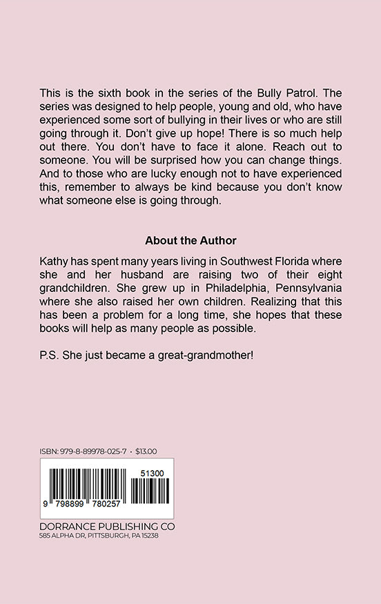 This is the sixth book in the series of the Bully Patrol. The series was designed to help people, young and old, who have experienced some sort of bullying in their lives or who are still going through it. Don’t give up hope! There is so much help out there. You don’t have to face it alone. Reach out to someone. You will be surprised how you can change things. And to those who are lucky enough not to have experienced this, remember to always be kind because you don’t know what someone else is going through.