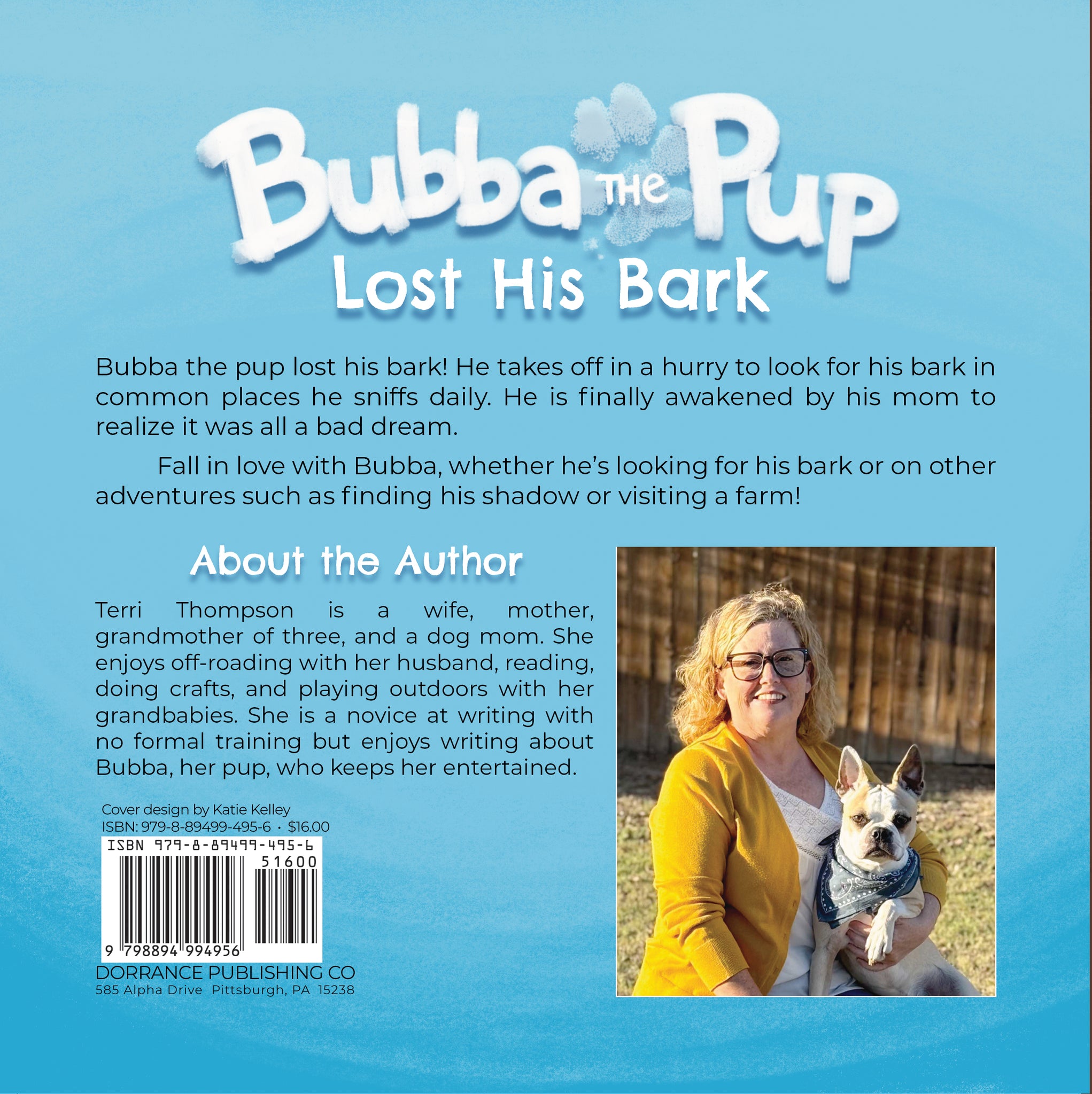 Terri Thompson is a wife, mother, grandmother of three, and a dog mom. She enjoys off-roading with her husband, reading, doing crafts, and playing outdoors with her grandbabies. She is a novice at writing with no formal training but enjoys writing about Bubba, her pup, who keeps her entertained.