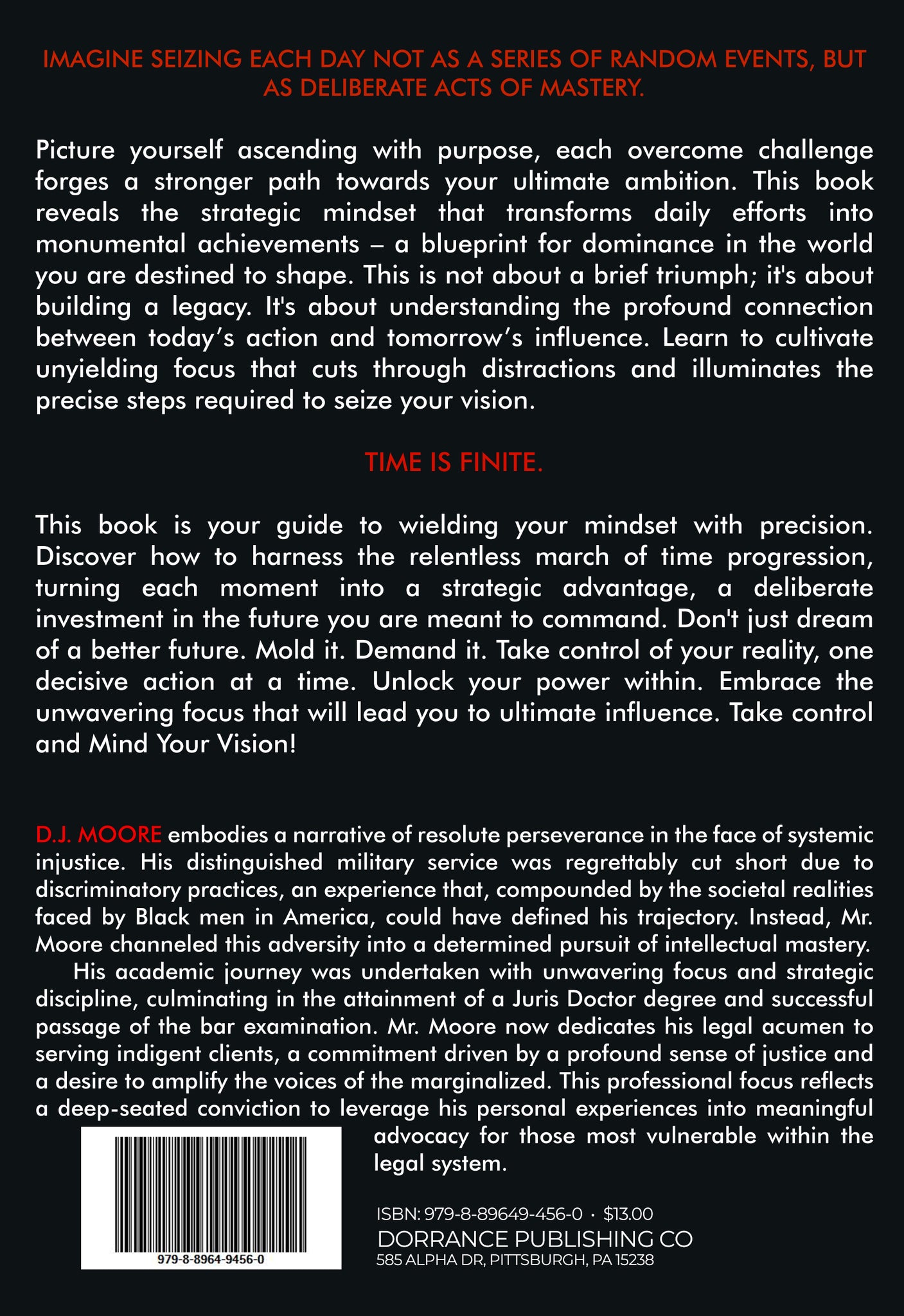 This book is your guide to wielding your mindset with precision. Discover how to harness the relentless march of time progression, turning each moment into a strategic advantage, a deliberate investment in the future you are meant to command. Don't just dream of a better future. Mold it. Demand it. Take control of your reality, one decisive action at a time. Unlock your power within. Embrace the unwavering focus that will lead you to ultimate influence. Take control and Mind Your Vision!