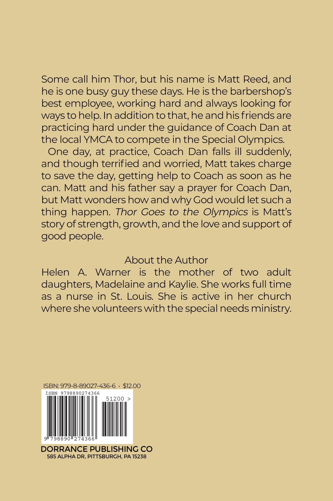One day, at practice, Coach Dan falls ill suddenly, and though terrified and worried, Matt takes charge to save the day, getting help to Coach as soon as he can. Matt and his father say a prayer for Coach Dan, but Matt wonders how and why God would let such a thing happen. Thor Goes to the Olympics is Matt’s story of strength, growth, and the love and support of good people.