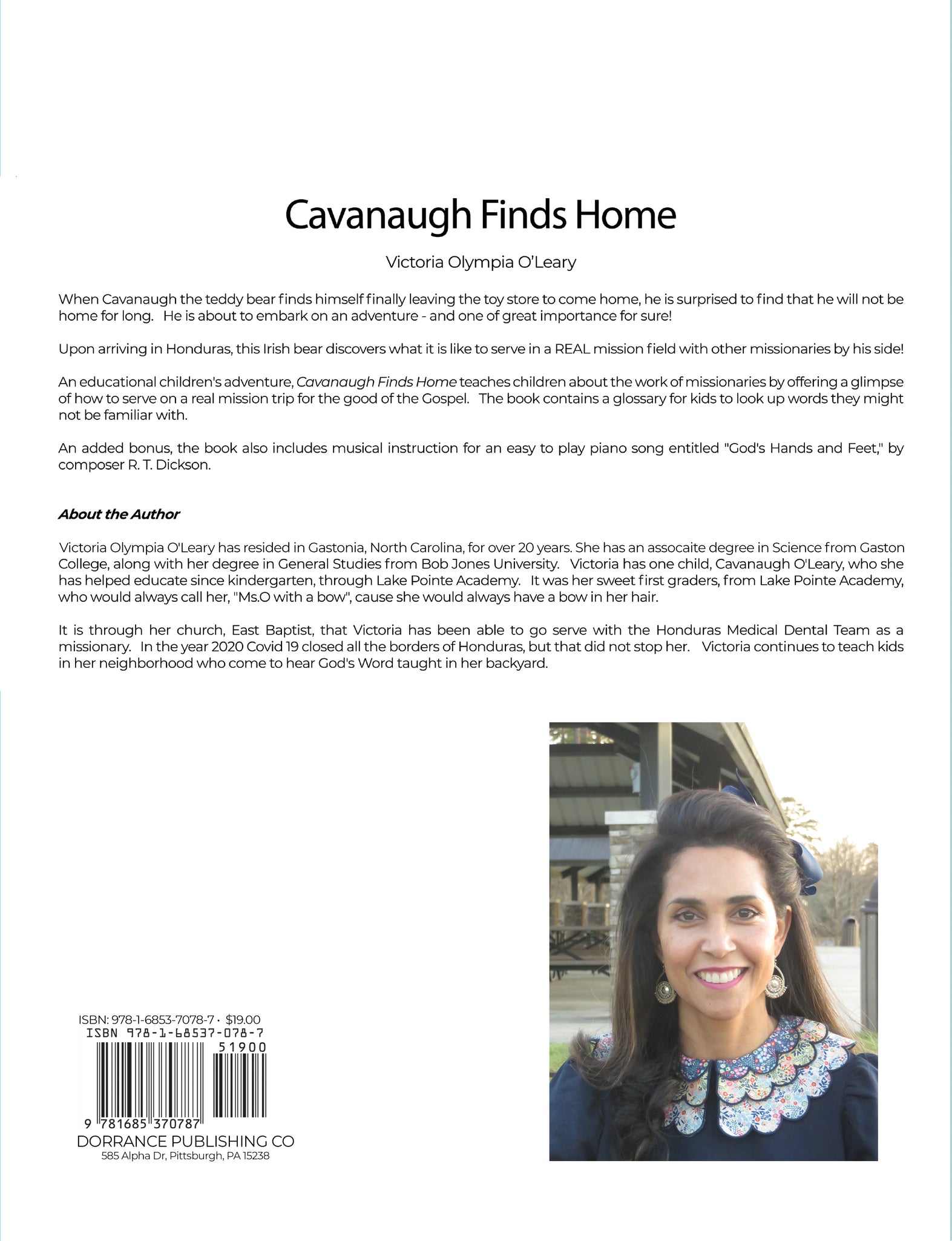 Victoria Olympia O’Leary has resided in Gastonia, North Carolina, for over 20 years. She has an associate degree in Science from Gaston College, along with her degree in General Studies from Bob Jones University. Victoria has one child, Cavanaugh O’Leary, who she has helped educate since kindergarten, through Lake Pointe Academy. It was her sweet first graders, from Lake Pointe Academy, who would always call her, “Ms. O with a bow,” cause she would always have a bow in her hair.