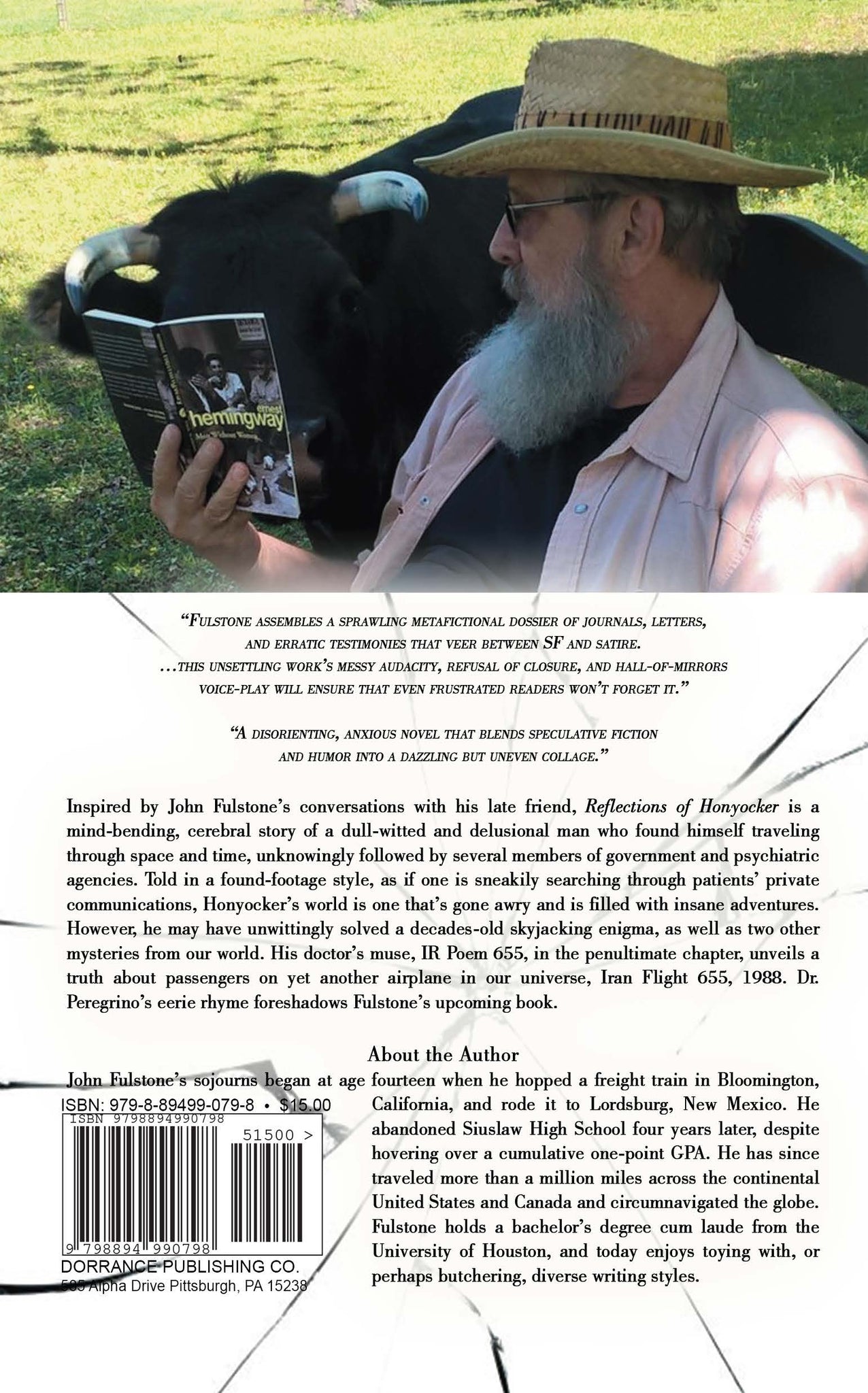 Inspired by John Fulstone’s conversations with his late friend, Reflections of Honyocker is a mind-bending, cerebral story of a dull-witted and delusional man who found himself traveling through space and time, unknowingly followed by several members of government and psychiatric agencies. Told in a found-footage style, Honyocker’s touch on a world gone awry is filled with insane adventures, yet he may reveal the solution to a couple of mysteries.
